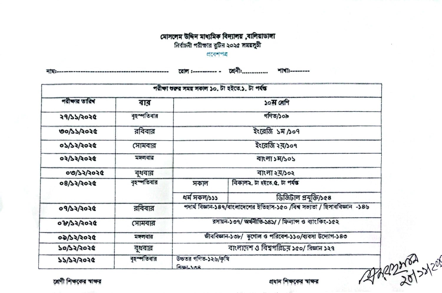১০ম শ্রেণির অভ্যন্তরীন পরীক্ষা ভিত্তিক সিলেবাস নোটিস বোর্ডে দেওয়া আছে।Date : 01-Jan-1970